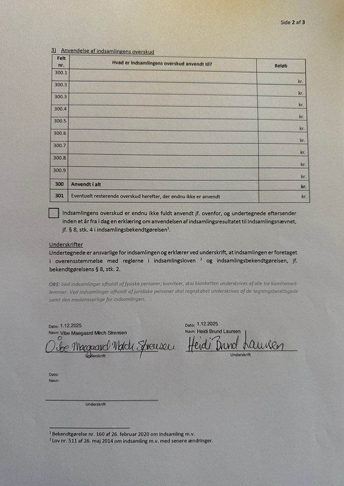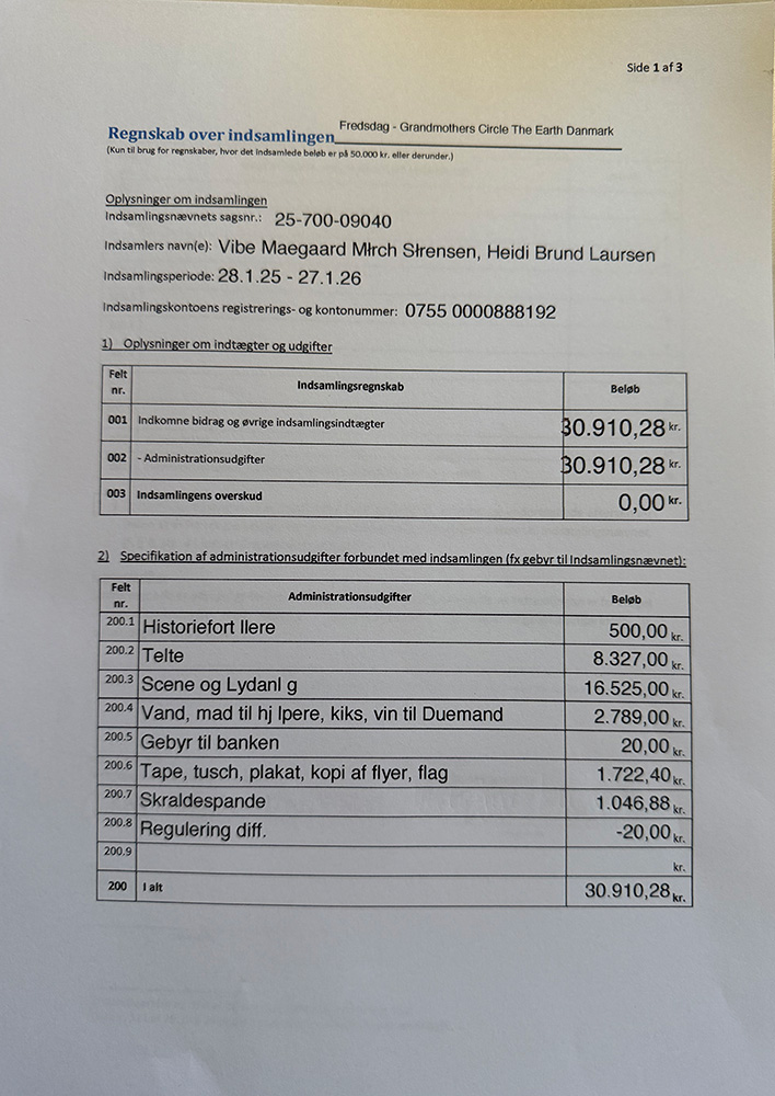 Regnskab over indsamlingen